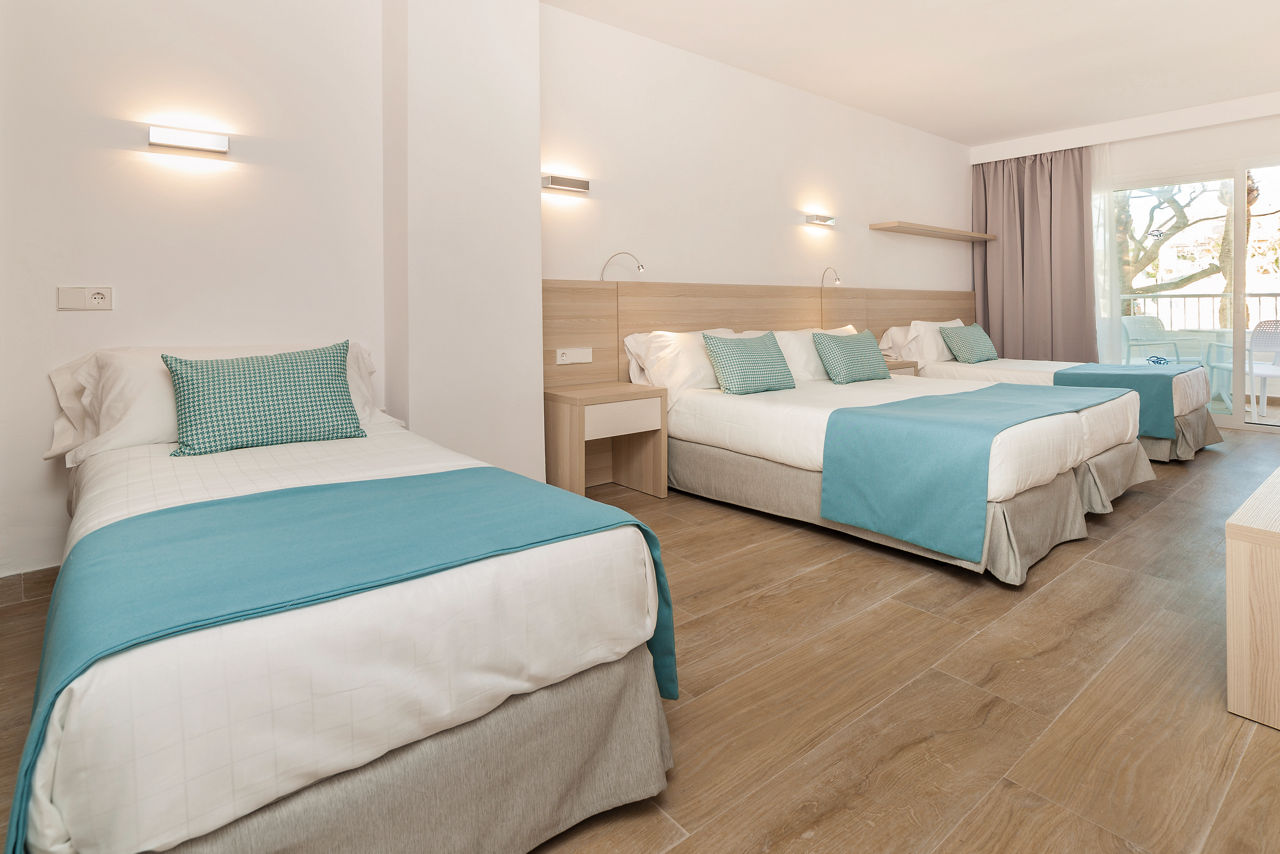 This hotel is the perfect choice for those looking for a fantastic all inclusive getaway. Why not spend your days soaking up the sun around the large outdoor swimming pool area, or discovering the long sandy stretch just minutes away. As an alternative, you will be well equipped to take a cycling trip through the beautiful landscape of Palma Nova. By night, take a stroll along the thriving promenade or spend the evening enjoying the hotel?s entertainment. The location of this hotel lends itself perfectly for easy access to both Palma Nova and Magalluf, so you can enjoy the best of both resorts.Double or Twin rooms sleep up to 3 adults and have air-conditioning, satellite TV, bathroom with shower and balcony or terrace. Double for Sole use rooms are also available at a supplement.