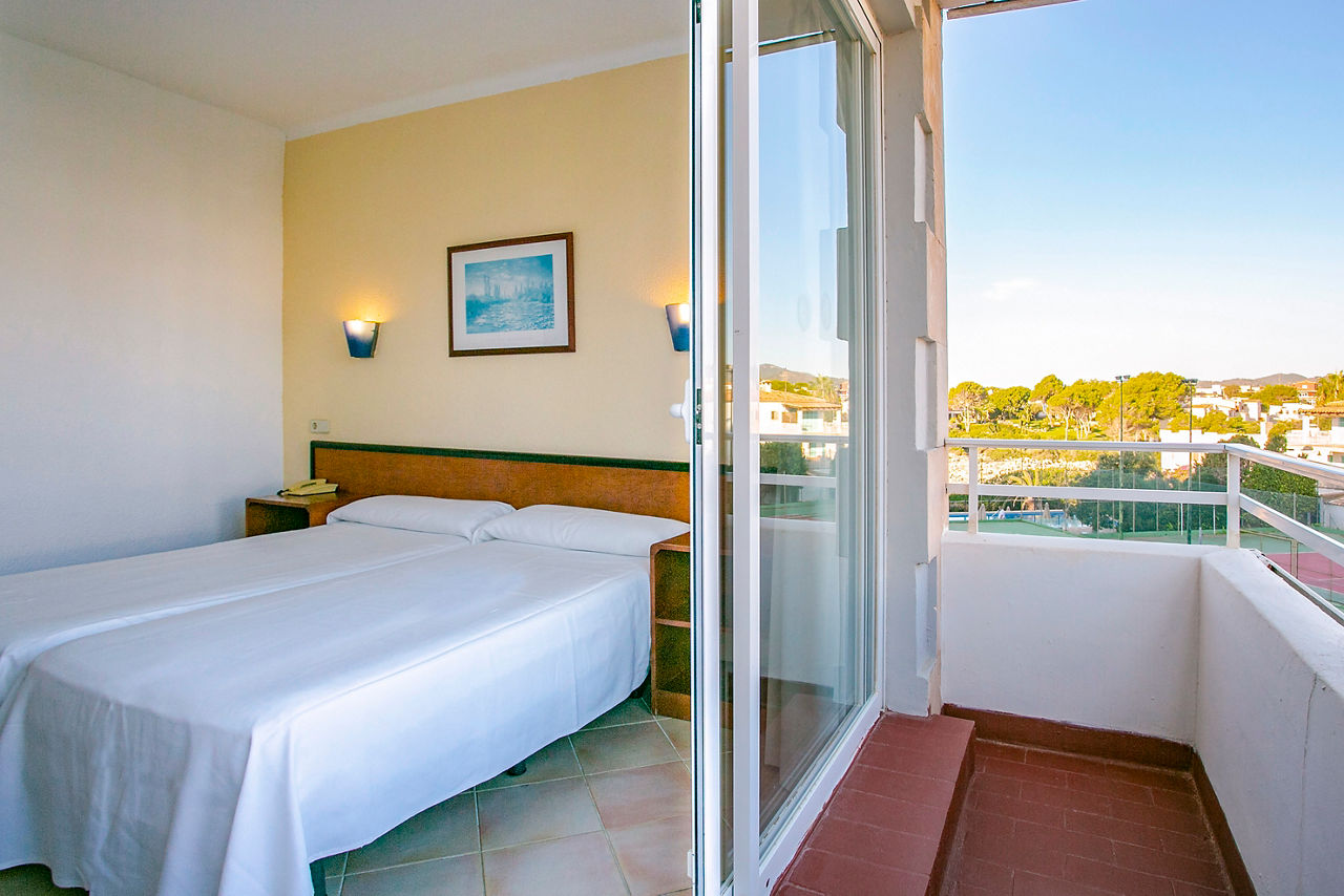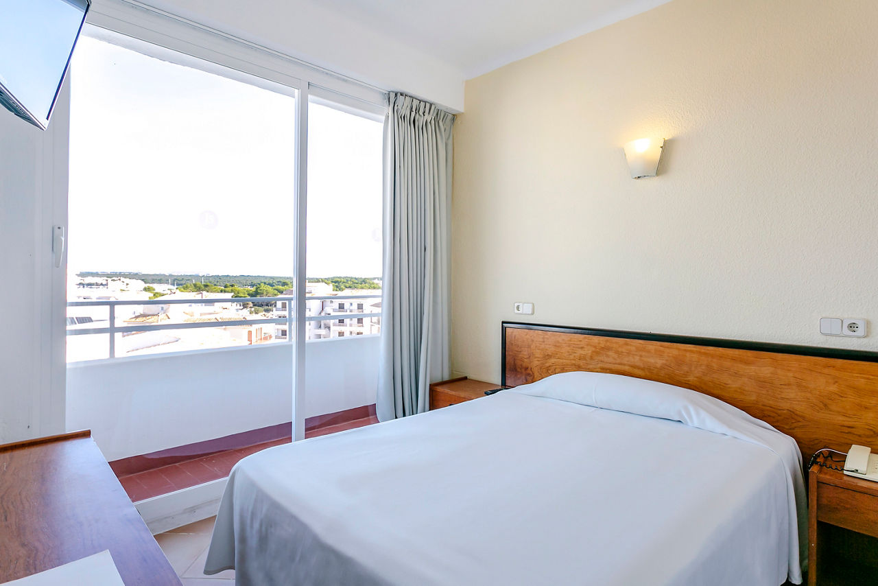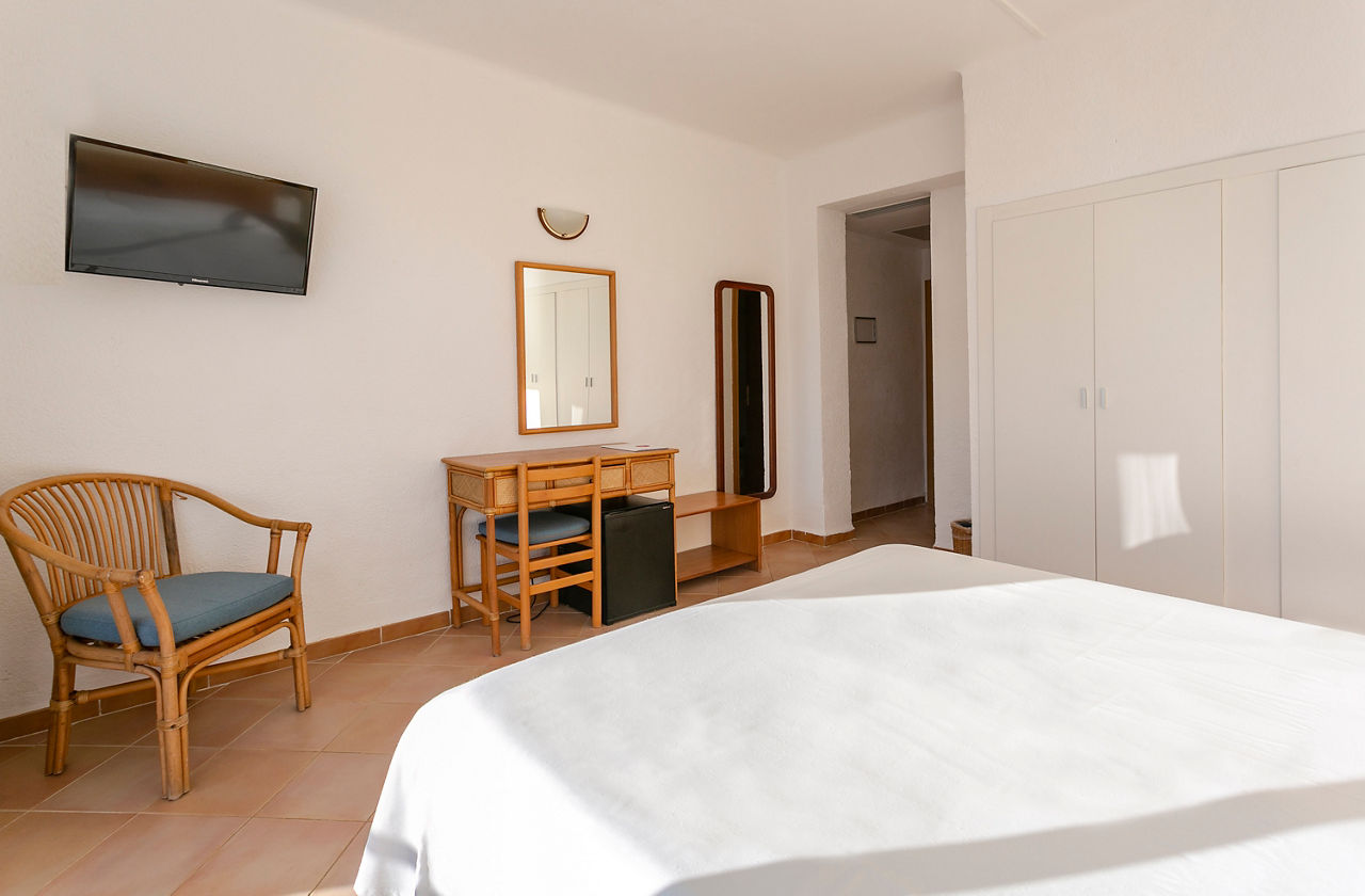 Double rooms sleep up to 3 adults have bathroom containing a bath with shower attachment, air conditioning, hairdryer, flat screen television and balcony or terrace. Double rooms with Sea View and Single rooms are also available.