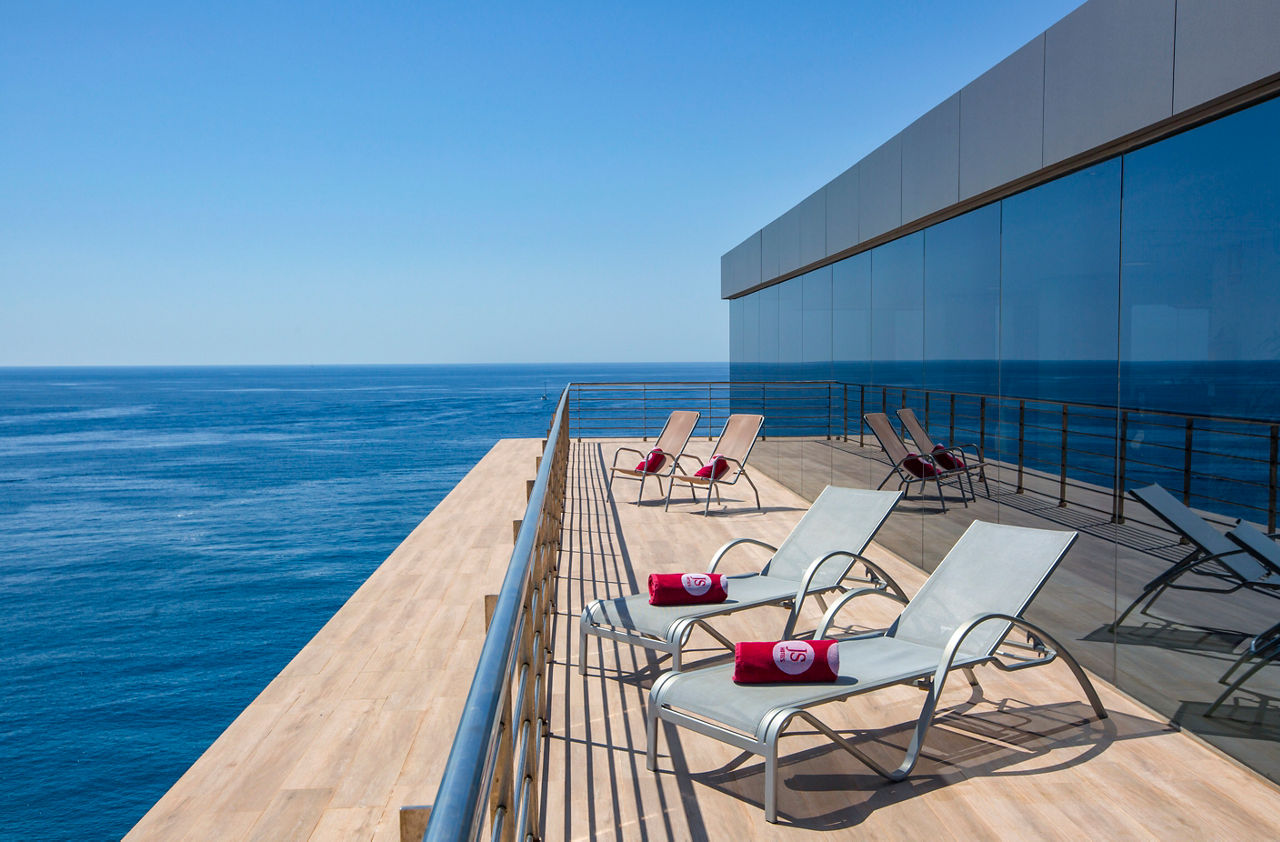 JS Cape Colom is an adults only hotel perched in a striking clifftop location, offering beautiful sea views and a laid-back atmosphere. Overlooking the Mediterranean and located close to the charming resort of Porto Colom, this hotel provides the perfect spot for guests to relax and unwind. The rooftop wellness area, complete with a sauna and whirlpool, adds an extra touch of luxury, allowing guests to enjoy ultimate relaxation while taking in the breath taking surroundings. With its laidback atmosphere and friendly service, JS Cape Colom is an ideal getaway for those seeking a quiet retreat in a truly remarkable setting.Double rooms sleep up to 3 adults have bathroom containing a bath with shower attachment, air conditioning, hairdryer, flat screen television and balcony or terrace. Double rooms with Sea View and Single rooms are also available.