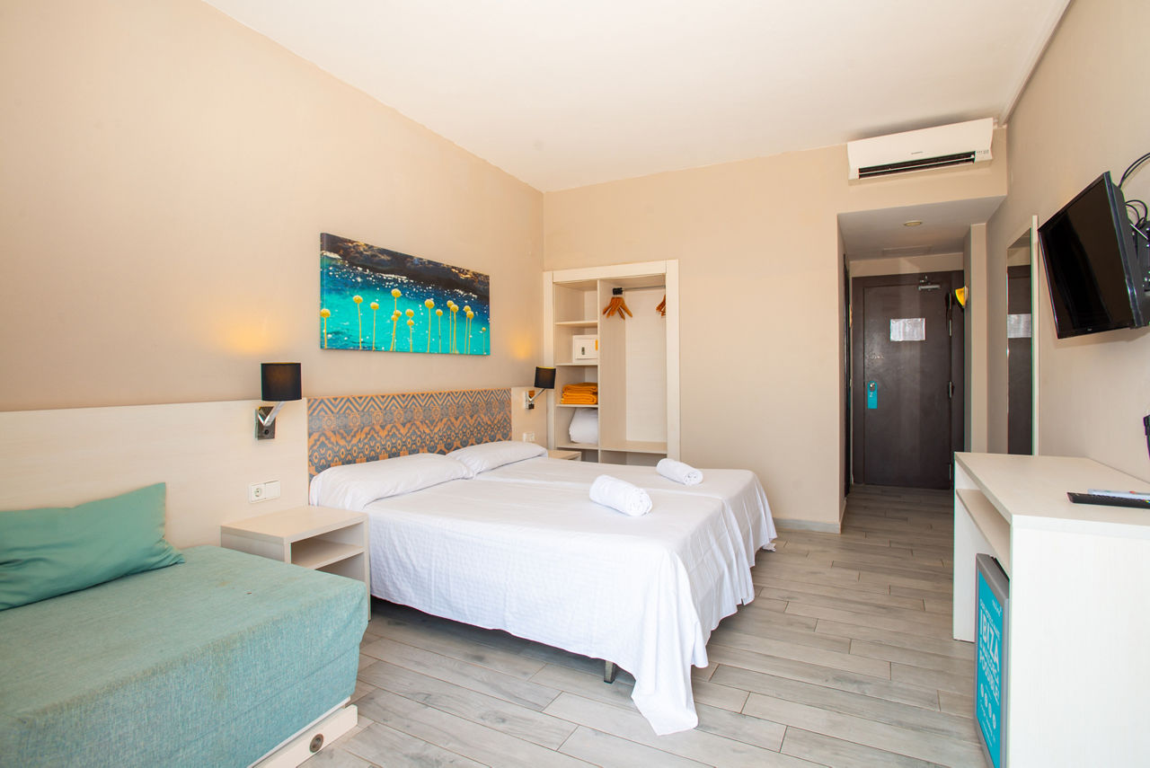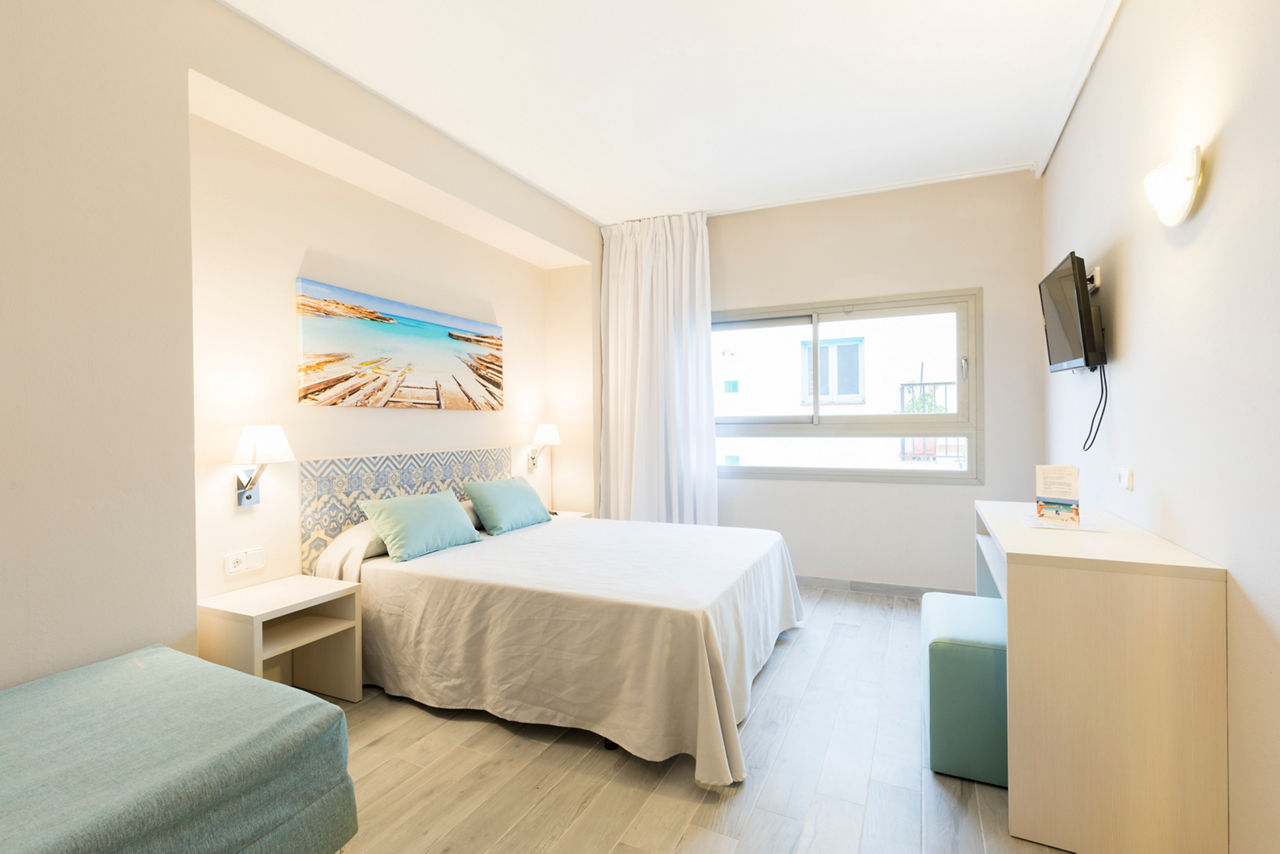 So you?re in San Antonio centre, close to Sunset Strip and right by a Disco Bus stop ? yep, the Azuline Hotel Llevant has well and truly nailed it. The rooms are bright, light and stylish, while the pool?s just over the road. If only the beach was nearby? ta-dah ? it is.Twin rooms sleep up to 3 adults and have a full bathroom, air conditioning, Wi-Fi* and a some rooms have a balcony. Triple rooms and Quadruple rooms are also available.