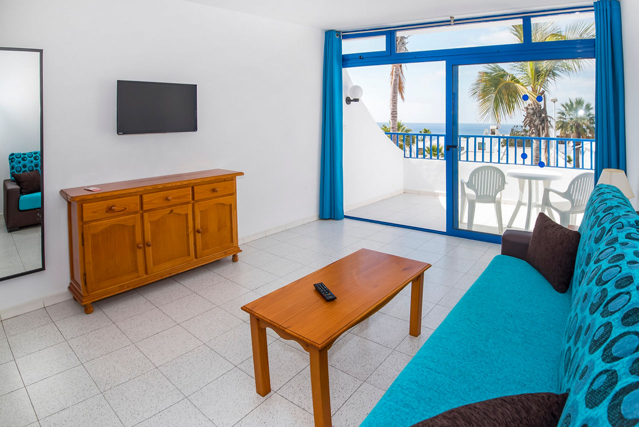 Located in the heart of Puerto Del Carmen, these popular apartments offer everything needed for a great stay. Laze by the pool during the day while the children play in their own little pool and enjoy the cooling drinks and filling snacks from the pool bar or head off to the beach to feel the sand between your toes. Children will enjoy the playground or can try their hand at table tennis and other activities available. With bars and restaurants close by you will find this a great choice for a memorable holiday.One bedroom apartments sleep up to 3 adults or 2 adults and 2 children and have bathroom containing a bath or shower, hairdryer, flat screen television, microwave, fridge, double cooking rings, kettle, toaster, coffee making facilities and balcony or terrace.