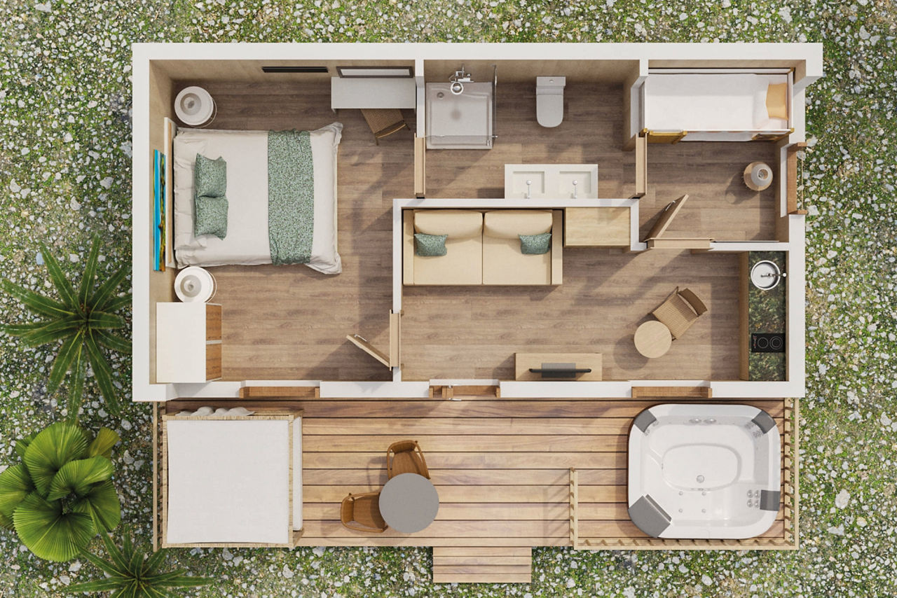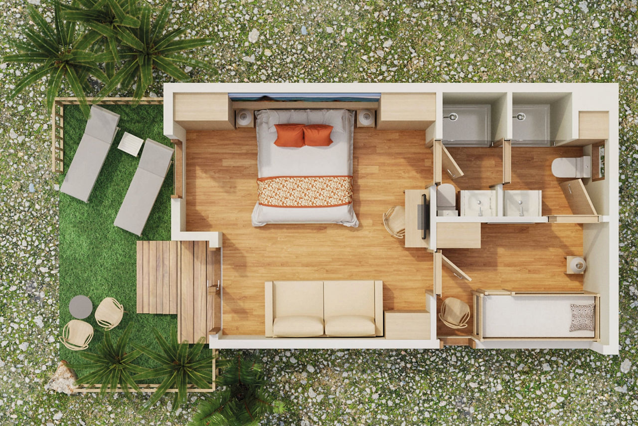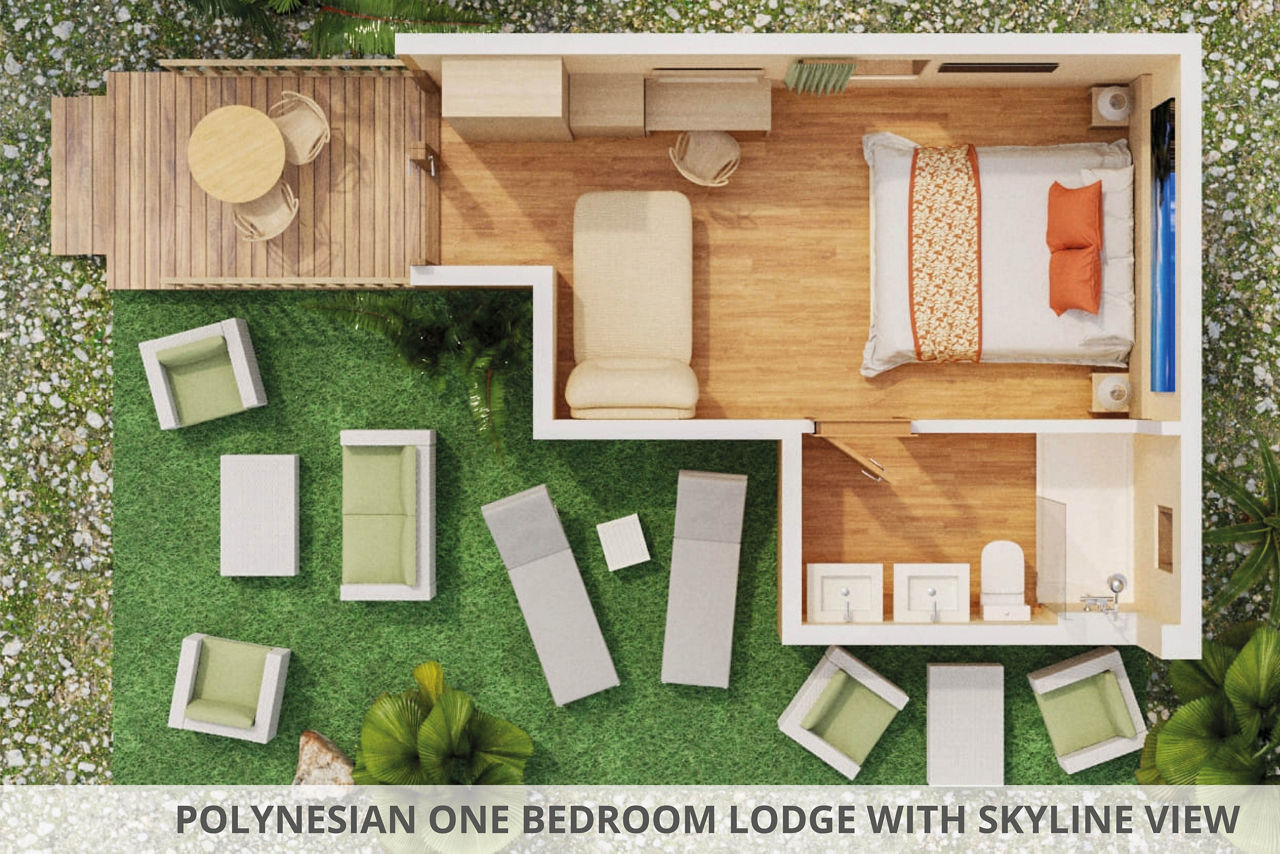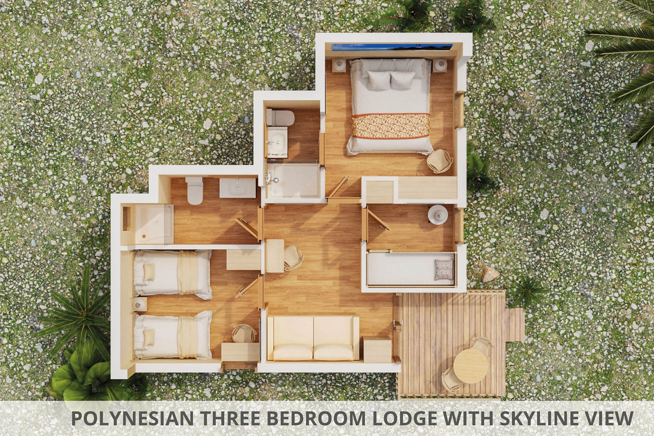 Polynesia Standard One Bedroom lodges sleep up to 2 adults and 1 child and have a bathroom with shower, TV, air conditioning and minibar. Polynesia Standard Two Bedroom lodges sleeping up to 3 adults and 2 children and Polynesia Standard Three Bedroom lodges sleeping up to 5 adults and 2 children are also available.