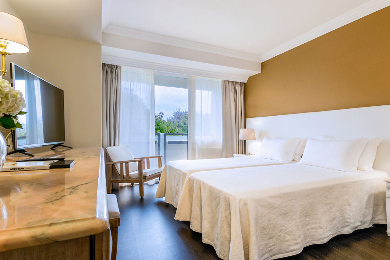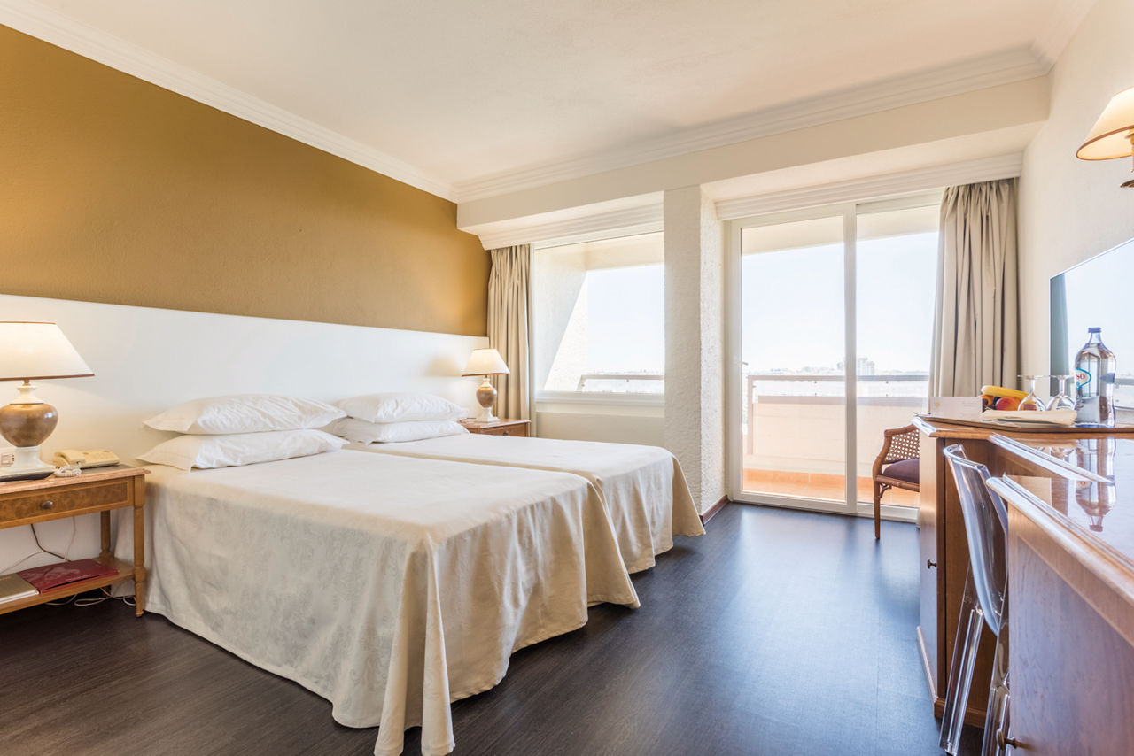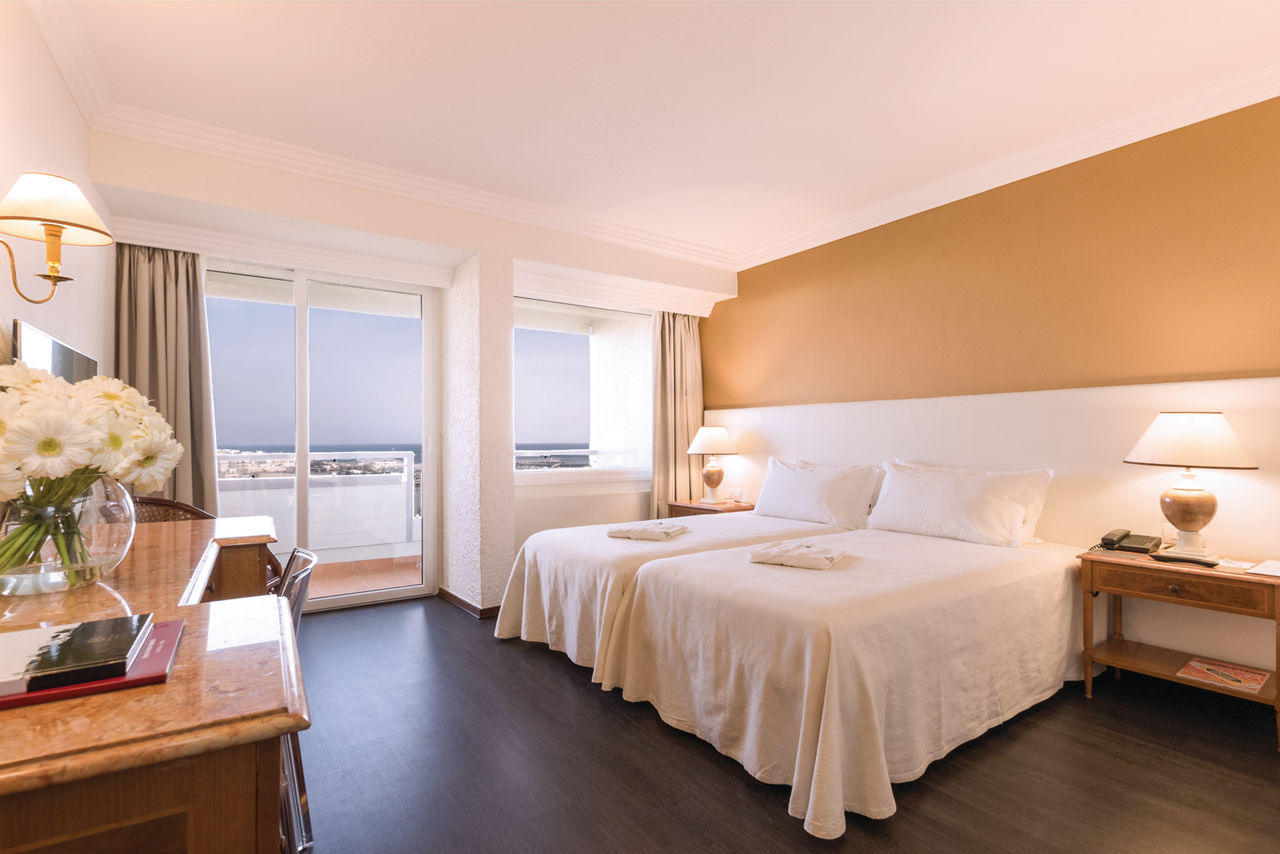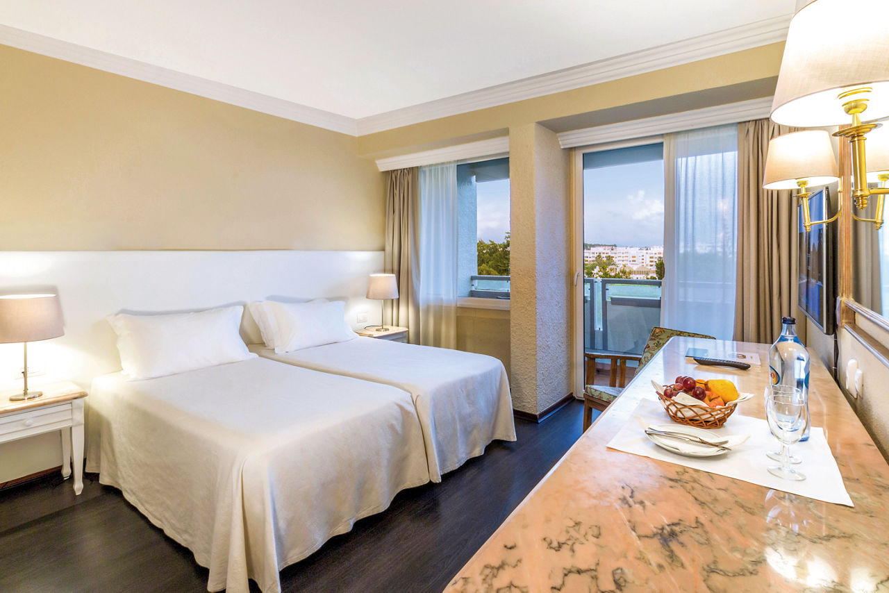 Classic Double and Twin rooms sleep up to 3 adults and have bathroom containing a bath with shower attachment, air conditioning, hairdryer, flat screen television and balcony or terrace. Classic Double and Twin rooms with Sea View, Sole Use rooms and Club rooms are also available. Please note: all Club rooms are situated on the top floors of the hotel, providing spectacular views of the resort and coastline. Additional Club facilities include fruit and water in the room upon arrival.