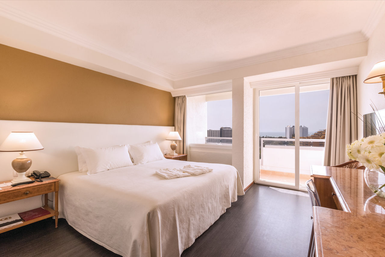 The stylish Dom Pedro Vilamoura is in an ideal location in the Algarve. Close to Vilamoura?s buzzing marina and only a short walk to the nearest beach, everything you could want is within touching distance. Dom Pedro Vilamoura is located perfectly for access to an array of nearby golf courses. Or head to the incredible on-site spa and enjoy a variety of revitalising treatments. Choose from a range of rooms to make your stay perfect. Enjoy sea views from your private balcony or retreat to a spacious suite after busy days exploring.Classic Double and Twin rooms sleep up to 3 adults and have bathroom containing a bath with shower attachment, air conditioning, hairdryer, flat screen television and balcony or terrace. Classic Double and Twin rooms with Sea View, Sole Use rooms and Club rooms are also available. Please note: all Club rooms are situated on the top floors of the hotel, providing spectacular views of the resort and coastline. Additional Club facilities include fruit and water in the room upon arrival.