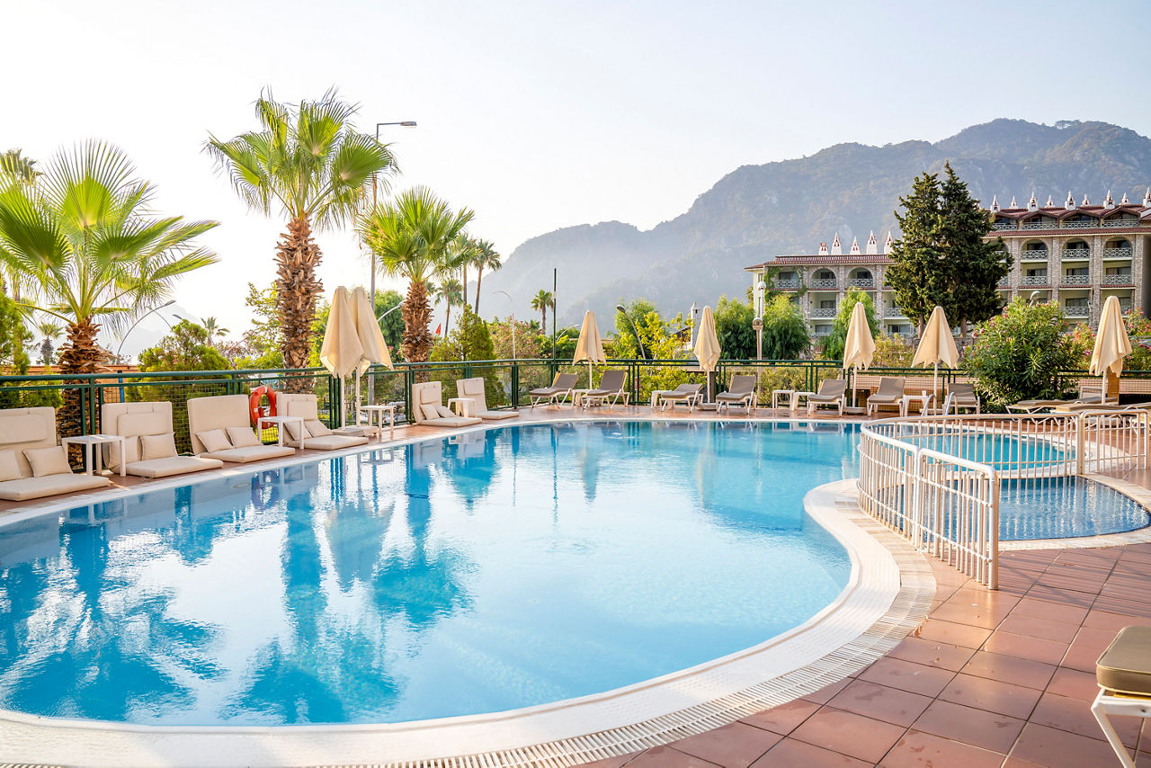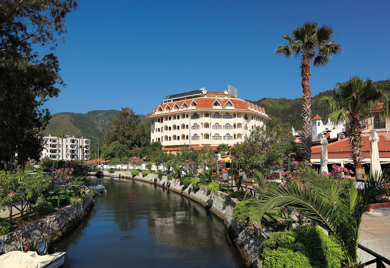 This uniquely designed hotel sits on the banks of Icmeler canal, just a short stroll from the centre of the resort, overlooking the sandy bay. Splash about in the sea or the outdoor pool, relax with All Inclusive buffet dining and savour sundowners in the two bars ? it?s whatever you fancy. You?ll find charm by the bucketload in Icmeler and its neighbouring resorts, so lead the way to Dalaman! You can?t beat a massage or a spell in the Turkish bath. Keep your eye out for around-the-clock entertainment ? we?re talking team sports, live music, quizzes and more.