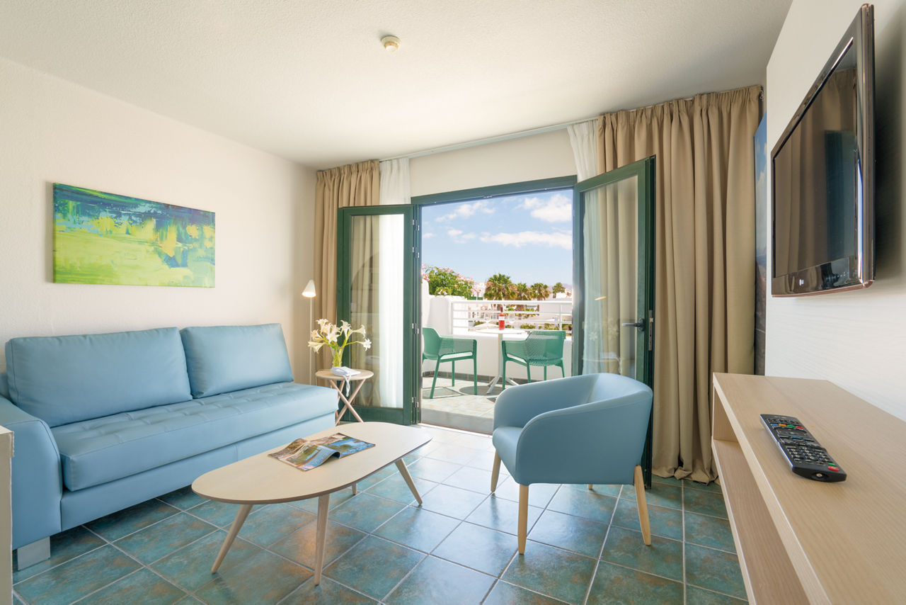 These welcoming apartments located in the heart of the popular resort of Puerto Del Carmen give you a great base to explore all the activities, restaurants and nightlife this stunning resort has to offer. Just a short walk away and you?ll be sinking your toes in the beautiful golden sands of the Playa Grande beach and perusing the promenade where you can treat yourself to local delicacies or souvenir hunting. A lovely sun trap of a pool area, with a separate children?s pool and spacious well-equipped apartments make this hotel perfect for friends and families looking for a relaxing holiday in the sun.One Bedroom apartments sleep up to 3 adults or 2 adults and 2 children and have twin beds, lounge area with sofa bed, bathroom with bath and shower, kitchenette with toaster, electric coffee machine, kettle on request and microwave, satellite TV and balcony or terrace.