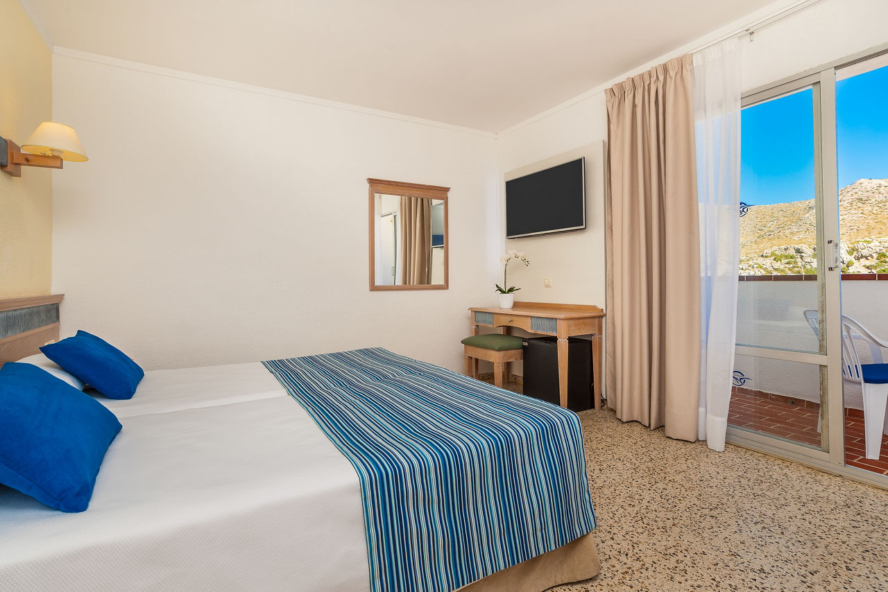 Located right on the seafront, Globales Simar boasts a fab location in sleepy Cala San Vicente. Enjoy the sun and beachy vibes or take a day trip into nearby Puerto Pollensa. This property has comfy rooms with sea views, a handy poolside bar, and great evening entertainment. The pool area is lively and spacious with plenty of sun loungers. At Globales Simar, it's all about easy-going comfort and good times.Double room sleeps up to 3 adults, bathroom, air conditioning, TV and balcony or terrace. Family rooms that sleep up to 3 adults and 1 child, and single rooms, are also available.