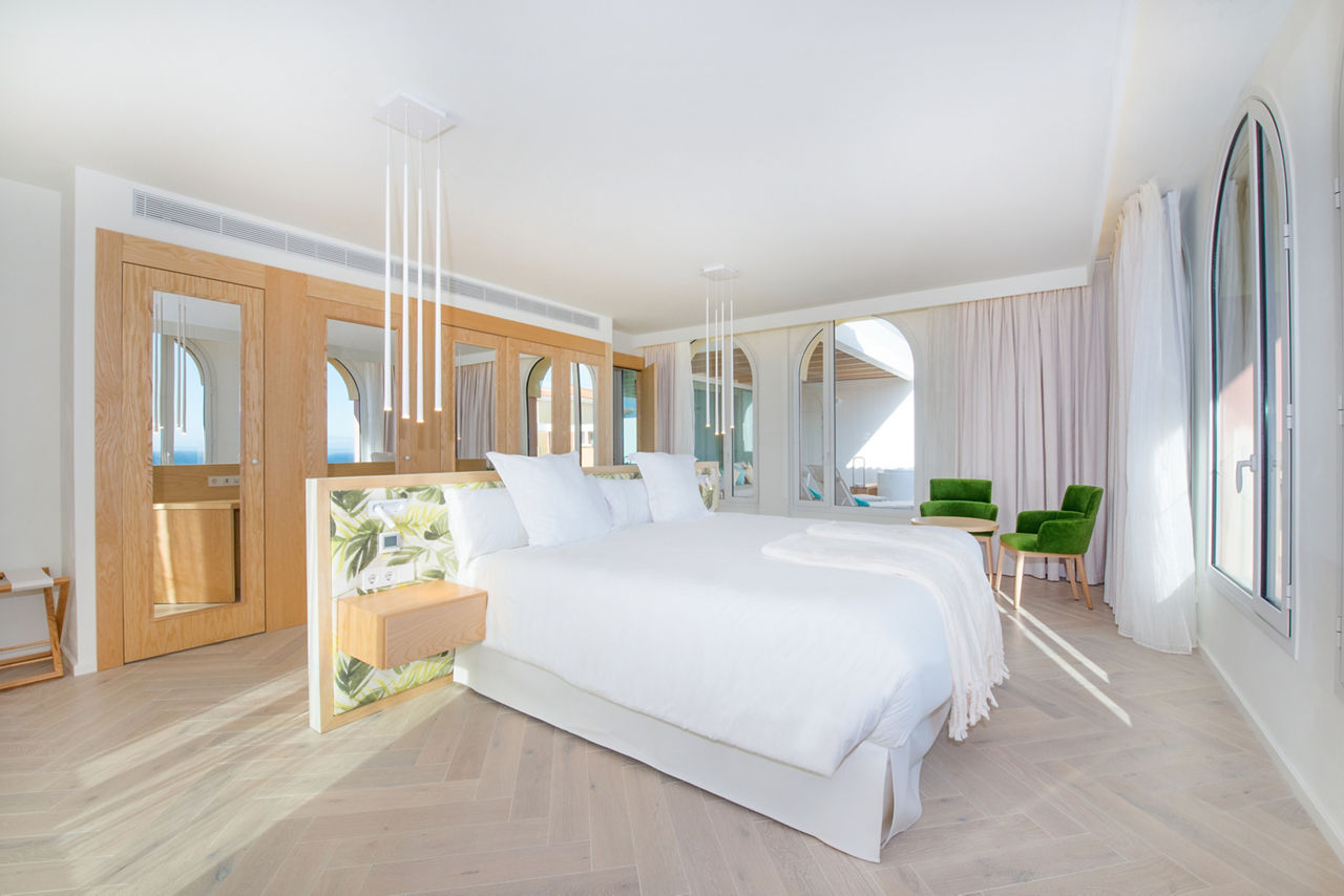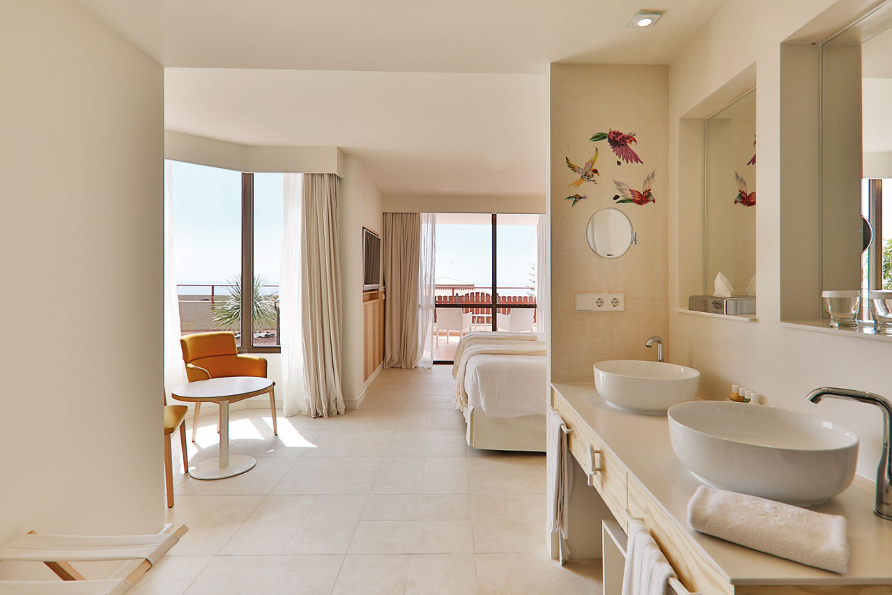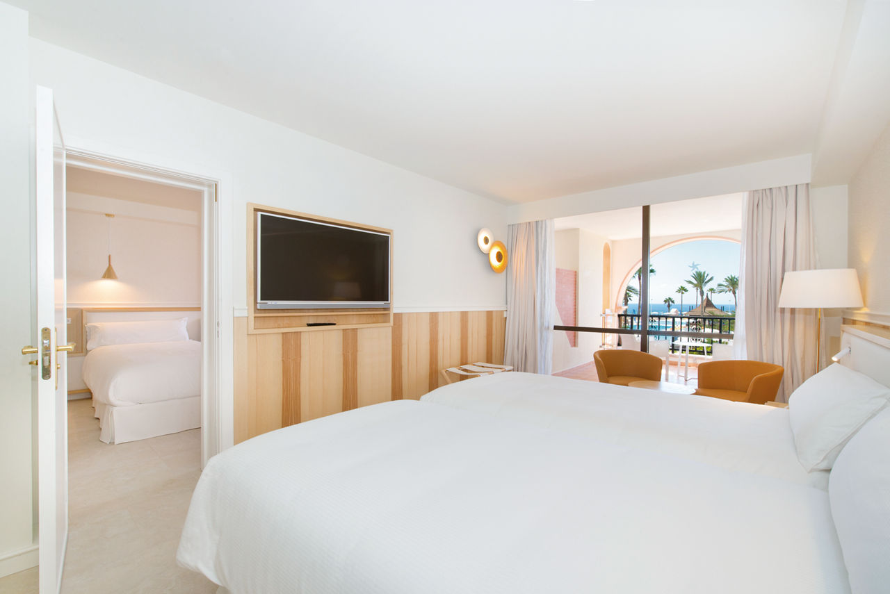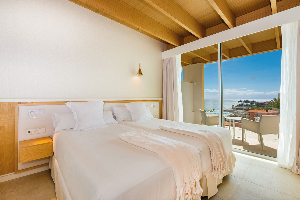 At the award-winning Iberostar Selection Anthelia, island-inspired grounds covered in bouquets of greenery pave the way to a whopping six outdoor pools. There are also unrivalled views of two of Tenerife?s best beaches ? palm-lined Playa del Duque and the sandy stretch of Fanabe. Meanwhile, dreamy rooms and the spa?s rejuvenating treatment menu raises those RDouble rooms with garden view sleep up to 2 adults or 2 adults and 1 child and have bathrobes and slippers, air-conditioning, flat screen TV, hairdryer and balcony or terrace area. Side sea view, Sea view executive rooms, Suites, Priority location rooms and Family rooms sleeping 2 adults and 2 children are also available. Family rooms are interconnecting rooms that also include a welcome gift for children under 12 years, complimentary children?s toiletries, children?s bathrobe for use within the hotel, free milk in the mini-bar (on request), DVD player and menu of children's films available in the Mini-Club.