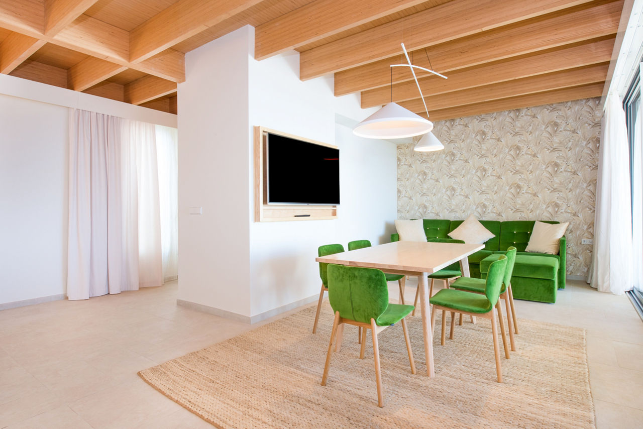 Double rooms with garden view sleep up to 2 adults or 2 adults and 1 child and have bathrobes and slippers, air-conditioning, flat screen TV, hairdryer and balcony or terrace area. Side sea view, Sea view executive rooms, Suites, Priority location rooms and Family rooms sleeping 2 adults and 2 children are also available. Family rooms are interconnecting rooms that also include a welcome gift for children under 12 years, complimentary children?s toiletries, children?s bathrobe for use within the hotel, free milk in the mini-bar (on request), DVD player and menu of children's films available in the Mini-Club.