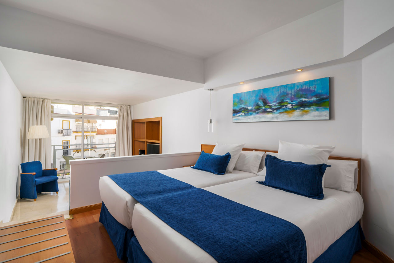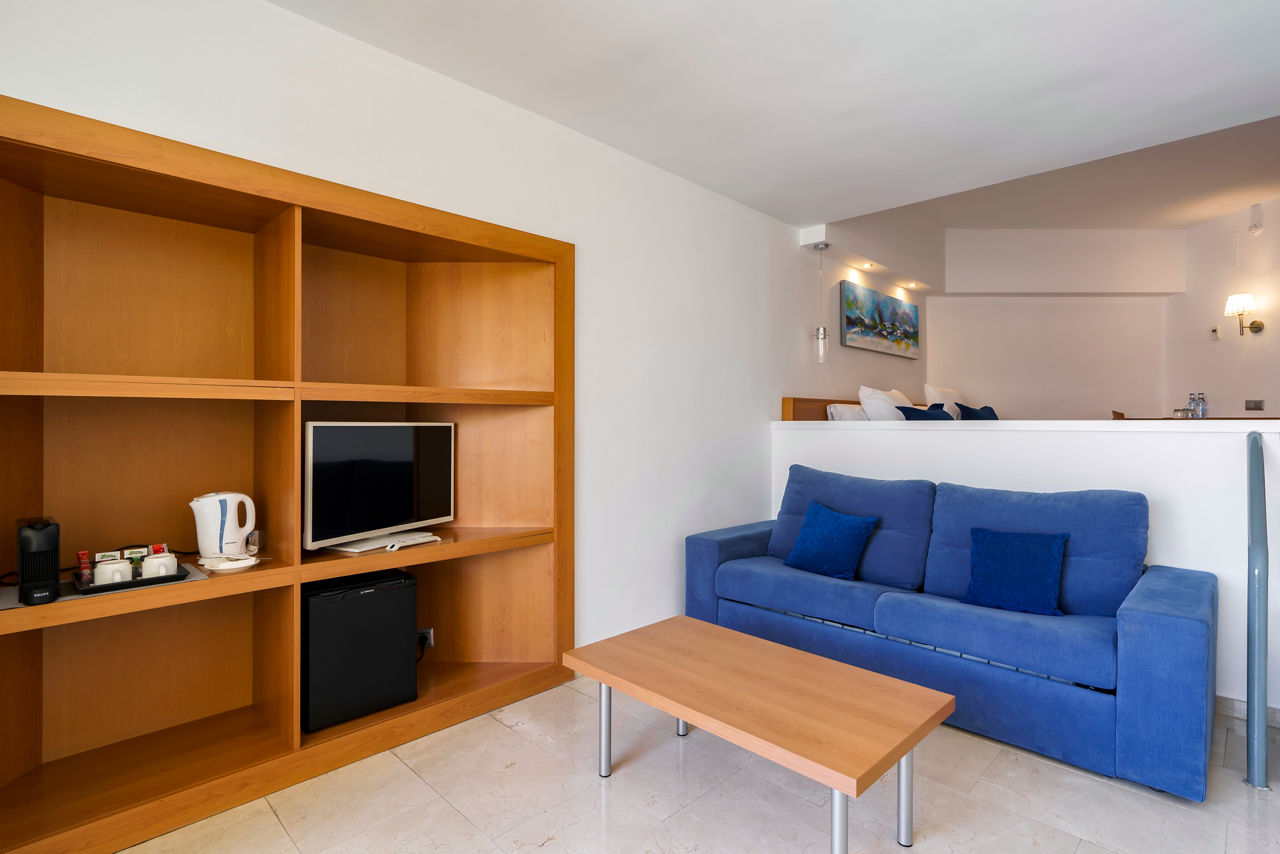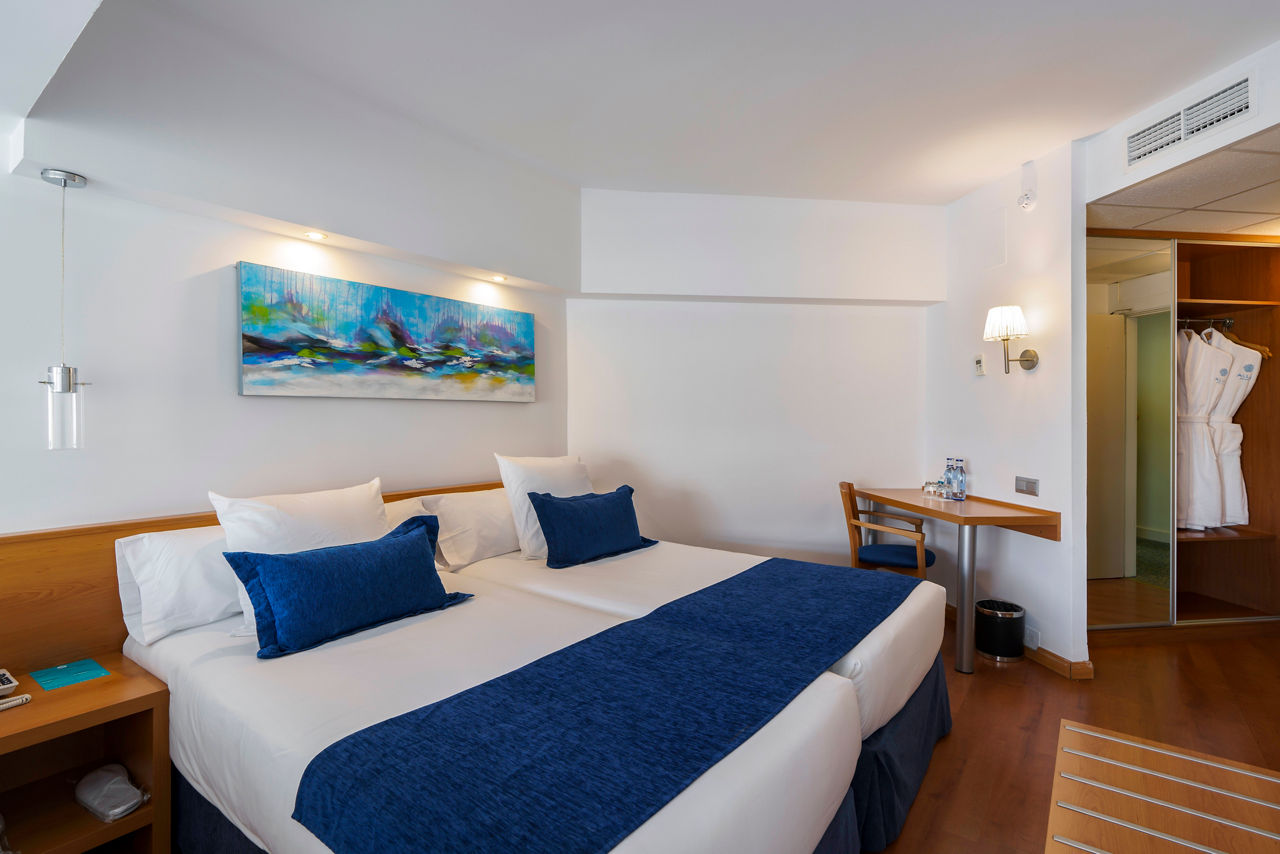 Superior twin rooms sleep up to 2 adults and have bathroom containing bath with shower attachment, air conditioning*, hairdryer, Tv, , safety deposit box* and balcony or terrace. Junior suites and Superior Junior suites with separate living room sleeping up to 3 adults and Junior Suite for single use are also available.