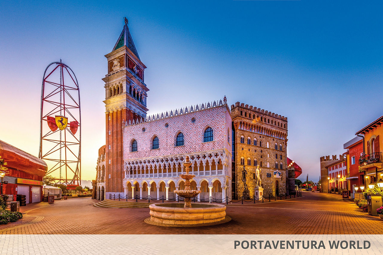 Twin/double rooms sleep 3 adults or 2 adults and 2 children and have air-conditioning, satellite TV and bathroom with hairdryer, mini fridge and balcony or terrace. For summer 2018 bookings, guests also receive entrance for one day to Ferrari Land.